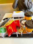 Накидали еду на поднос, картошку прямо на информационные листы, на стопку салфеток, на упаковку с тостом. Треш) Картошка холодная и пересоленная. И ведь не было толпы народу, чтобы хоть как-то объяснить такое пофигистичное отношение. Ехали из Москвы чтобы покушать в любимом Маке, поскольку наши почти все закрыты)) Приехали))