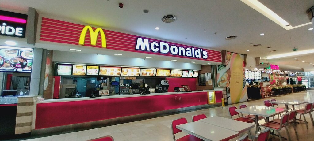It is a classic burger restaurant located on the dining floor in the shopping mall. All MC Donald,s stands are the same here.