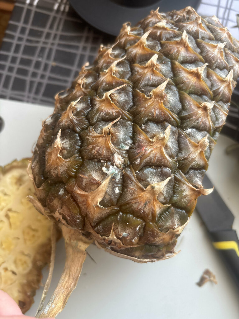 Продали просроченный ананас. Цена интересная, продавщица сказала, что все в порядке. Принес домой, разрезал - оказался пропавший и в плесени