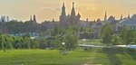 Зеленые луга сами по себе красивые, плюс лучшее средство для нервного успокоения, если ими любоваться. А тут это все на фоне футуристического купола, строений из стекла и металла, а также традиционно-исторических московских архитектурных красот.. Очень симпатично, в солнечный день-великолепно!