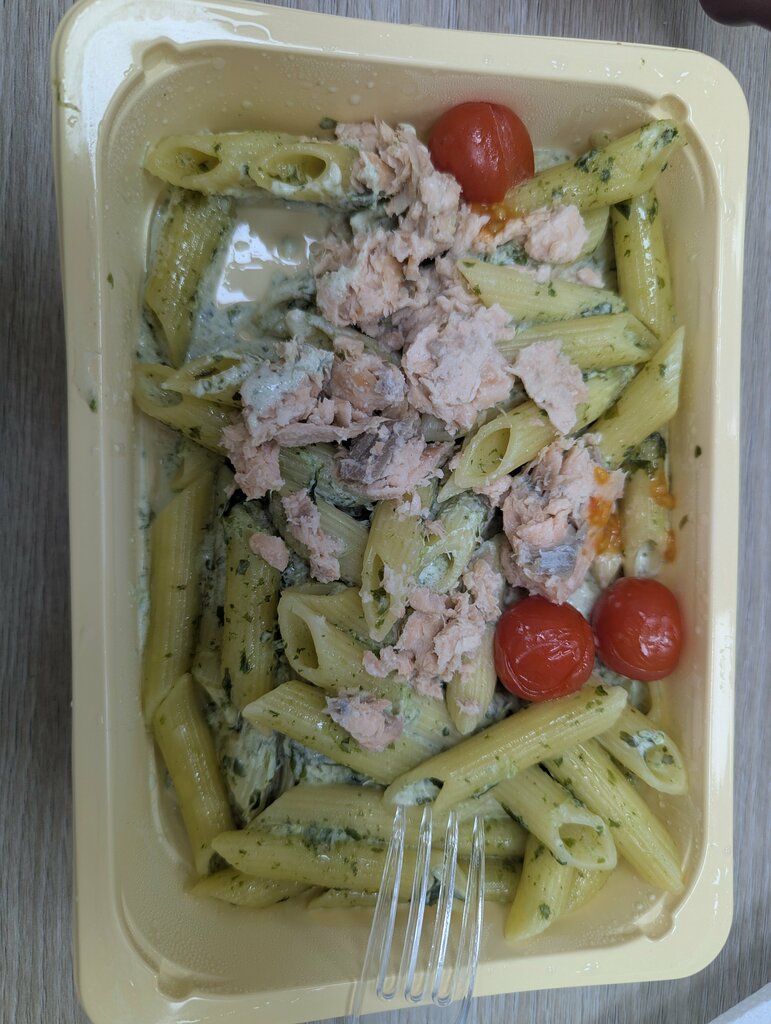 С каждым разом блюда все хуже и хуже по качеству. Цены растут, а качество падает. Взяла свою любимую пасту со шпинатом и красной рыбой: макароны заверенные, рыба выглядит как каша, да еще и с костями. Раньше блюда и выглядели презентабельно, и на вкус было достойно за свои деньги. Продавцы же в нашем БЦ всегда хорошие, хорошо выполняют свою работу. Вопросы только к производству.