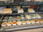 Это заведение, скорее, для быстрого питания - готовые упакованные разнообразные блюда. Есть отдельный зал на несколько столиков, туалет, микроволновка. Качество блюд оценивать не берусь, не пробовал, но посетители практически всегда в наличие. Моя специализация - кофе. Вот это - отлично. Что эспрессо (достойная крема, густое масло, кислотность, даже есть аромат), что флэт на кокосовом (крепко, молоко свежее) - отменного качества. И всё это за смешные деньги. У некоторых горе-предпринимателей "на районе" то же самое (и не такого качества) в 3 (три!) раза дороже.