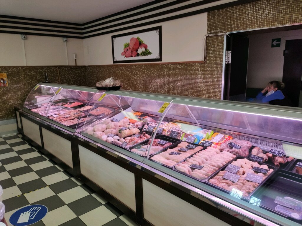 Очень хорошие мясной, хлебный отделы. Еще, бывает, покупаем сухофрукты в отделе специй. Колбасы с сосисками тоже хорошего качества. Неплохой выбор овощей. Всегда чистенько, персонал приветливый. Есть удобный трап для коляски, если вы с ребенком, и автоматические внешние двери. Внутренние надо все равно руками открывать. В час пик бывает очень много народу, некомфортно в маленьком помещении. Минусы для меня незначительные, поэтому ставлю 5 звезд. 👌🏻 В основном за шикарный мясной отдел.