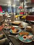 Почитали отзывы, отзывы были очень ничего, решили зайти... Ну что, нам сразу сказали, что только на 2,5 часа, дескать, ну всё заказано... Мы зашли просто пообедать и не обязательно сразу намекать, что нужно будет быстро уходить... Официант, девушка, между тем, когда мы закончили обед и всячески старались привлечь ее внимание, вообще его не проявляла и подходить не спешила, таким образом сама затягивала время нашего пребывания в ресторане... На наши знаки обратил внимание человек, который принимал заказ на столик у людей, к нам подошли... В туалете пахло туалетом, хотя вроде убирают. Что касается блюд, то салат был странно неравномерно нарезан и выглядел довольно бледно, а кусочки пахлавы подали на только что промытой и мокрой тарелочке, и выглядели они будто им лет сто... К кофе претензий нет, но воду к эспрессо тоже не подавали... Никто не поинтересовался, понравилось ли нам то, что мы поели, придём ли мы ещё раз, счёт предоставили без эмоций... Не могу сказать, что совсем плохо, но осадочные остался...