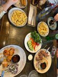 Замечательное заведение, ходим всегда, когда на Ваське! Очень вкусно! Официант Мерет очень приятный! Очень вкусный салат с курицей и шашлыки! Пришли с детишками, брали им нагетцы, огромная порция, всем всё понравилось, обязательно придем ещё!)