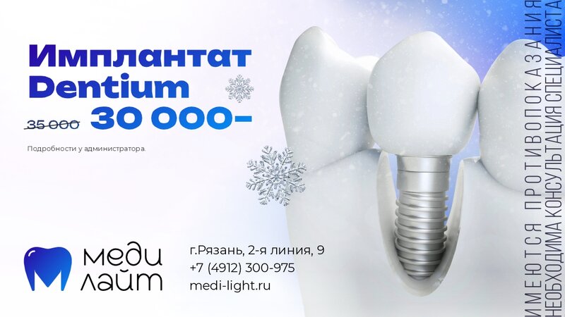 Имплантация зубов всего за 30 000 рублей! В стоматологии "Меди Лайт" действует специальное предложение: ✅ Качественный имплантат ✅ Професси...