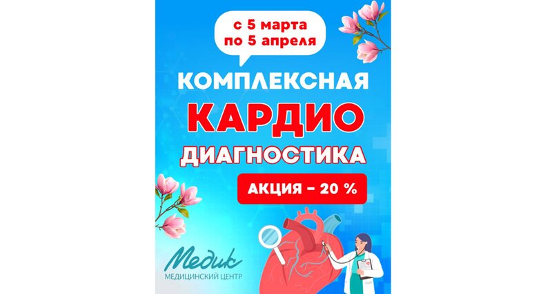 Весенний перепад давления? Проверьте сердце со скидкой 20%! С 5 марта по 5 апреля – комплексная кардиологическая диагностика в медицинском ...