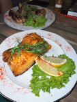 Отдохнули вдвоем на 5000, взяли: семгу и свиные ребра Все это считается за 100гр и по факту финальную граммовку вы узнаете в чеке)) офик об этом не сказала, а мы и не знали Так что лучше уточнять сразу или нести на взвешивание ну и явно эта рыбка не стоит 2500, как и ребра свинины ожидание официанта, чтобы попросить чек, попросить что-то изменить в заказе очень долгое, мы сами 2 раза вставали ее искать, ну тоже не круто