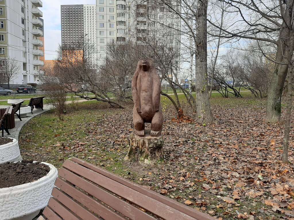 Тупо стоящий медвень. Ничего примечательного. Администрация боится эксперементировать с формами? Народ не поймет? Просто медведь, по типу ростовой фигуры. Где лоуполи из ржавого металла? Хромированные элементы? Посмотрите что есть в мире и скопируйте лучшее, ну или вдохновитесь!