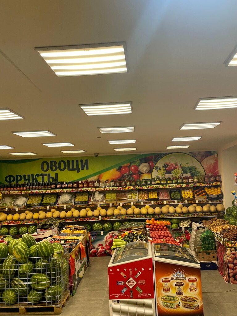 Свежие фрукты и овощи. А так, есть все, колбаса, сыр, молочные продукты и т.д. Продуктовый магазин с приветливым персоналом.