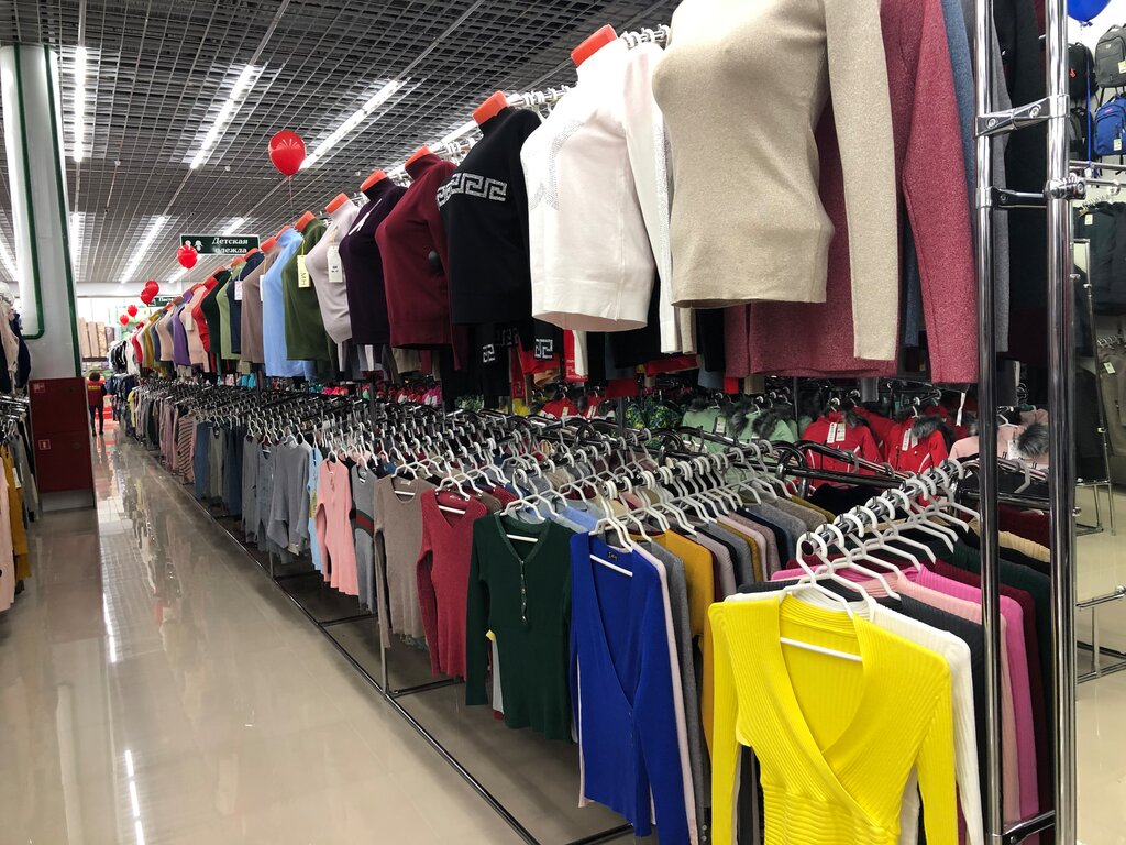 Большой выбор товаров по низким ценам, большинство женской одежды конечно с блёстками, но если поискать, то можно найти вполне достойные варианты)))) в магазине просторные проходы, одежда отсортирована по полу и возрасту. Вместительная парковка перед входом.