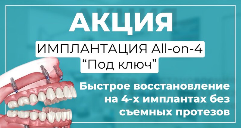 Имплантация All-on-4 под ключ от 350 000 *Подробнее уточняйте у администратора клиники