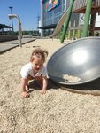 Очень прикольная и красивая площадка. Козявкам по 2 года минут на 40, точно заняты. Могу и босиком выпустить с лопатами, камушки и песочек поберебирать... Тенов или маркиз не хватает, очень жарко летом и камушки очень греются.