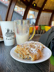 Две звезды за большой ассортимент продукции (хотя это сомнительный плюс) и за вежливость персонала. При этом этот же персонал жутко невнимательный, несколько раз проговорили, что заказываем омлет с грудинкой, пробили на кассе с помидором, исправили, но на кухню передали сначала с помидором, мы это услышали и обратили внимание, что не с помидором, а с грудинкой, кассир передала на кухню, но приготовили всё равно с помидором 🤦🏻‍♀️ пришлось исправлять. Омлеты оказались невкусные, сильно зажаренные, пресные и с очень большим количеством растительного масла. Сендвич с рыбой невкусный, пресный, хлеб резиновый. Круассан с миндалем (самый дорогой круассан в меню) жесткий, будто неделю лежит на витрине, хотя уверяют, что продукция свежая, «сегодняшняя», невкусный, несладкий, тесто пресное. Хотела заменить, но мне предложили просто его погреть, стал помягче, но конечно на вкусе это не отразилось. Кофе - раф тоже разочаровал, будто в молоко просто капнули кофе для цвета, кофе вообще не чувствуется. И ещё имейте ввиду, что в этом заведении негде помыть руки.