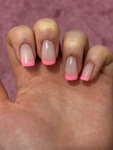 - Повреждена кожа около кутикулы: заметны покраснение и мелкие раны/царапины — это вызывает дискомфорт и повышает риск инфекции. - База нанесена слишком толстым слоем: выглядит неаккуратно, даёт тяжёлый эффект - У основания, у самой кутикулы, покрытия практически нет, тогда как по краям слой слишком толстый - В целом маникюр выглядит неестественно
