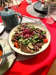 Снимаю одну звезду за конкретно жёсткую говядину во втором блюде. Название не помню, но она была кусочками с рисом, овощами и острым соусом. Добавляю после ответа бизнеса- я был не один. Пришли по рекомендации компаньона. Второй персоне принесли другой салат, не тот что заказывали. Переделывать не стали, ограничились сладким комплиментом. В общем, я , как тактичный человек, сделал вид, что все вкусно, дабы не огорчать компаньона