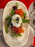 Доставка была сегодня,стейк из семги и салат с рукколой,грушей,сыром и креветками. Нет слов одни эмоции,во первых задержали заказ,а во вторых сейчас будет фото этой помойки что на вид то и на вкус. Салат вообще как будто в прошлом месяце был приготовлен,стейк размазня
