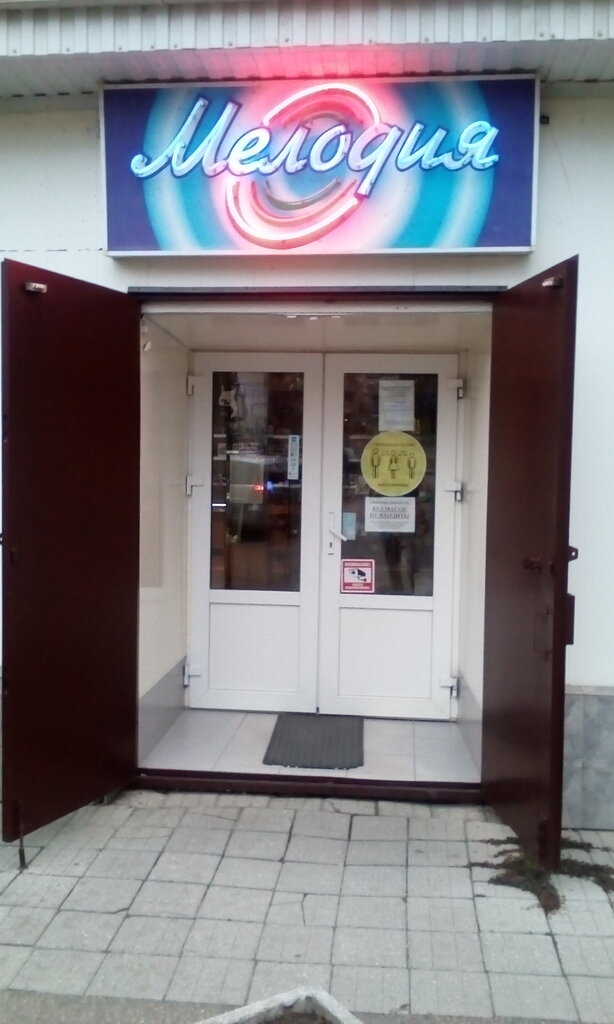 Мелодия - обыкновенный провинциальный музыкальный магазин со скромным выбором бюджетных инструментов в основном гитар. Если ваш ребёнок собирается учиться играть, то купить там недорогую гитару неплохого качества, то вы можете смело идти туда. Однако если вы профессиональный музыкант, для которого качество дороже, то следует подыскать другое место.