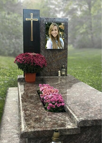 Гранитный памятник: стела - 100х50х8 см ; постамент - 60х20х8 см; цветник - 100х8х8 см (2 шт), 60х8х8 см. В свободной продаже. Подходит для оформления надмогильного сооружения женского так и мужского захоронения.