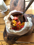 The staff was ostentatiously friendly and very unprofessional. Age was probably a hindrance. The atmosphere was so-so, there were young people working there who behaved like guys at recess between classes. We had a tour in a cave near the restaurant for 1000 drams each. The guide learned only 5-6 sentences for the tour and did not have any questions for himself, as he was in a hurry to leave the place early, did not have particularly interesting information, and in general it was just a waste of money. The cave itself was beautiful, but its contents can be found in every post-Soviet house: old kerosene lamps, cast-iron irons, etc. Nothing special or interesting. The view from the cave is the same as from the balcony and from the highway near the restaurant. There is also a "bar" with salts, where admission cost 2000 drams per person, where, of course, we did not go, because we did not want to repeat the disappointment with the cave. The food of this place deserves special attention. Firstly, he was served by unprofessional staff who showed their displeasure too clearly and did not know how to open a bottle of wine. We had to remind them about the fish they had forgotten about. Secondly, you have to try too hard to ruin a salad like the Greek one. There was sauce in it from somewhere, which ruined his whole taste. The only hope was the fish, which, as it turned out, was not the first freshness and the smell of which accompanied us on the road for a long time. In short, the cook did not live up to a single hope of people hungry from the road, and the staff was too unhappy. The cherry on the cake turned out to be an upset stomach for all four of us, after which we recovered for a long time. I highly do not recommend this place.