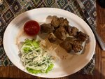 Ресторан на набережной Гурзуфа. Заход либо- по лестнице, либо- в обход по дороге под углом до 15 град, что для Гурзуфа - ни о чём. Практически 3х этажный. 2 и 3 этажи - небольшие залы, первый этаж - открытая терраса с большими столами, могут спокойно усесться до 8 человек. Рукомойник в зале. Туалет на 3 этаже, по оригинальному указателю (мальчик и девочка в национальных татарских костюмах, направление показывает стрелка, стилизованная под горизонтально лежащую ёлку). Маленький, но чистый. Официанты работают быстро, хорошо ориентируются в меню, явно на самообучении (не контролируют заполненность перечниц и солонок, но исправляют очень быстро). Брали: Чебурек с бараниной (2 чебурека в порции) 570₽ - (не «высший пилотаж»)очень тонкий слой мяса, практически отсутствует бульон. Мидии запечёные в соусе «Пармезан» - 800₽, татар Аш (большие пельмени с говядиной) - 510₽, армут (десерт из груши в манговом сиропе с грецкими орехами) - 500₽. Гвоздём программы был шашлык «Мераба» - 590₽ за 100 гр. в порции было 250гр на 1475₽ - разочарование вечера. Мясо перемороженное-размороженное, вкус - как тряпка. Не стал есть, вернул больше половины порции обратно, конечно же, всё включили в счёт. Хотелось вкусно отужинать, да не получилось.