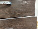 10 месяцев пользования компьютерным столом. Качество отвратительное. Раньше думал, что такой дешёвой фурнитуры не существует. Оказывается, существует. Мало того, ручки крепятся на САМОРЕЗЫ!!! Всё, что могло в этой мебели расшататься и отвалиться, расшаталось и отвалилось! Ручки заменены на новые, металлические из строительного магази, НА БОЛТАХ. На фото выдвижной ящик верхний просел и задевает за нижний при пользовании. Ручки уже заменены