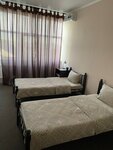 Гостиница около трассы , но это не мешает спать, только рядом с аэродромом ) Номер чистый и просторный: полотенца, халаты, матрас комфортный (мягкий), диван раскладывается, там дети спали. Мы приехали в 23, нас встретили , погрели привезённую с собой еду и налили чай )