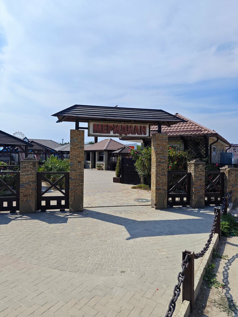 Кафе «Меридиан» было выбрано нашей большой семьей для заключительного ужина в Голубицкой и отметить годовщину отношений с мужем❤️приятная обстановка,можно быть и в центре событий вечера,можно уединиться в беседках подальше.Заказ был брак быстро принят,так быстро исполнен,это большой плюс👍Все достаточно вкусно,впечатления о нашем заключительном и романтическом ужине остались приятные,благодарим!