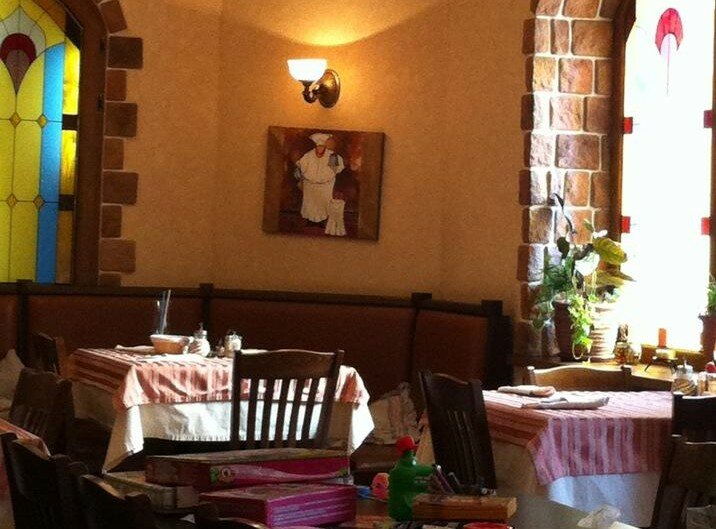Очень вкусная кухня, по выходным работает аниматор, можно оставить детей - поесть в спокойной обстановке. Борщ вкусный, средиземноморский (если что, не точно помню название, но официант вас поймет :)суп - самый любимый, цезарь вкусный, дети любят фри и шашлычок :)