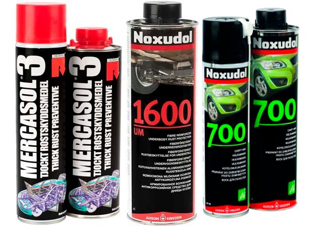 Плотный (черный) антикоррозийный материал для днища, способный к самовосстановлению при повреждении покрытия. Наносится методом распыла на новые автомобили, для старых - днище автомобиля предварительно обрабатывается mercasol 1.