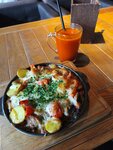Встречает администратор, проводит к столику и выдает меню, официант принимает заказ и делает его через планшет уже возле бара. Есть безлимиты по выпивке, обеды 480р, вроде неплохое наполнение. Но меню маленькое какое-то. А так довольно приятный интерьер(просторно),музыка, 2 этажа, удобный туалет, там есть и мицеллярная вода, палочки, диски(все для людей крч) По вкусу: Облепиховый чай. Просила без меда, подают в чашке с трубочкой. Все вкусно. Горячо. Сковорода с курицей и сыром супер. Большая порция, много сыра, все очень вкусно, мясо нежнейшее, картофель беби немного пресноват.