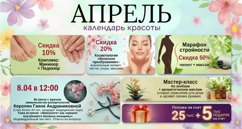 Cosmetology services:aqua-makeup, arsonvalization, make-up, botox, photorejuvenation, lifting, hardware cosmetology, facial, eyelash, eyelashes/eyebrow coloring, biological currents therapy, ultrasound, biopolymer gel, bio, contour correction, injection lipolysis, cosmetic tattoo, peeling, body care, injection procedure, eyebrow correction, surgiderm, cleansing, LPG, ultrasonic liposuction, dysport, epilation, collagen, power shower, figure correction, facial massage, lip augmentation, permanent lip makeup