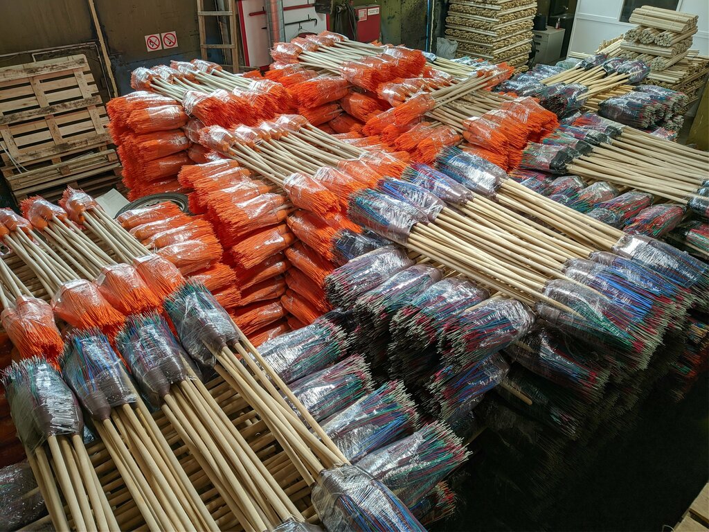 Метла полипропиленовая круглая с черенком (трехкольцевая)