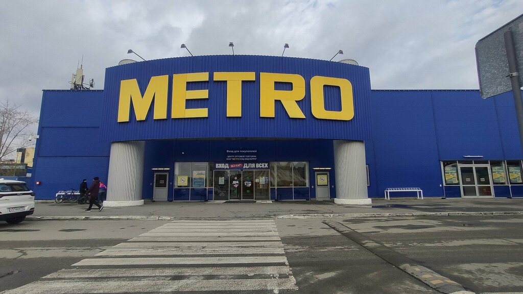 Хороший торговый центр. Расположен на северной окраине Екатеринбурга Большой выбор продуктов и пром товаров Отличный елочный базар Есть выбор и цены вполне умеренные Для получения скидок необходимо получить карту Метро Есть удобный электронный вариант