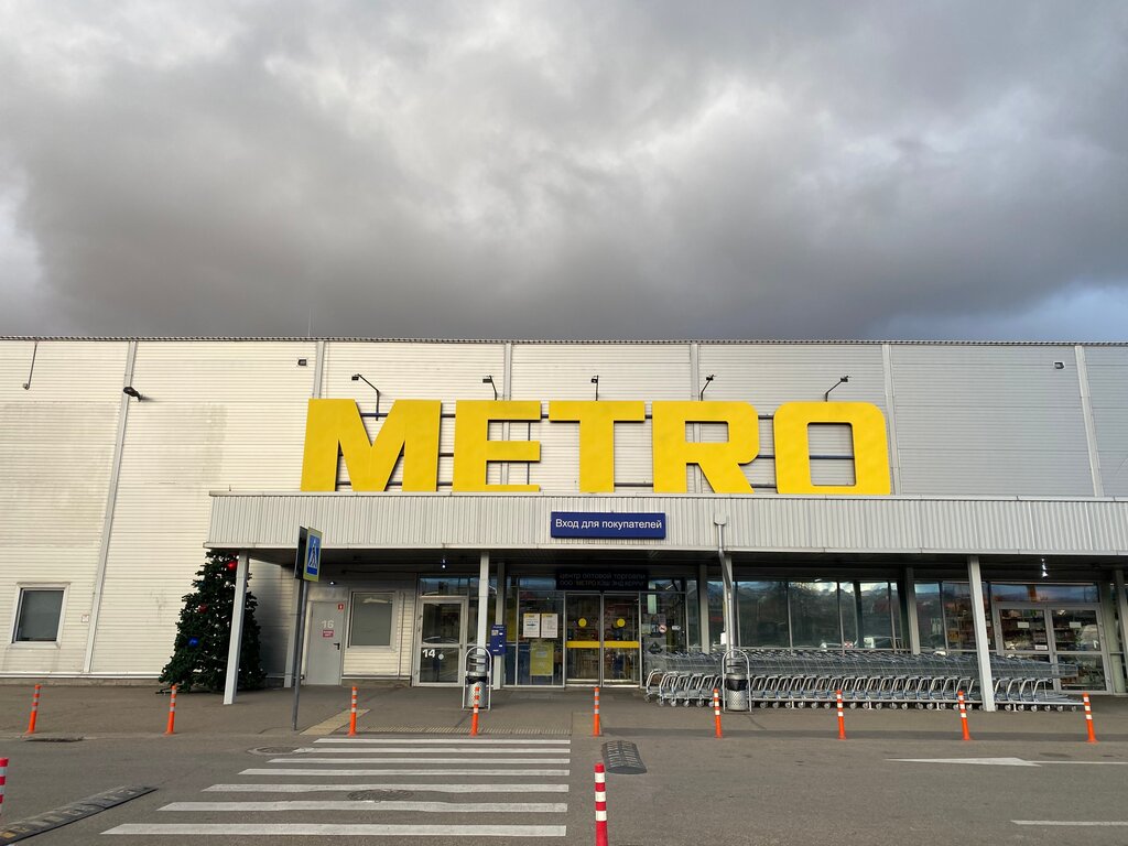 Магазин сети «Metro» для оптовых и розничных покупателей. Карта магазина для применения скидок оформляется сразу при установке приложения, это удобно. Оплата по карте или наличными. При оптовой закупке скидки, но там можно и от 3-6 покупок тоже скидку применять. В ассортименте много товаров продуктовых и промышленных все в одном магазине. Удобная парковка. Очереди разумеется но это связано с популярностью магазина. Зато за новогодними подарками с огромными скидками можно приехать в январе и купить очень много конфет в новогодней упаковке ). Есть бытовая техника, посуда. На Пасху, праздники подвозят и продают подарочные наборы производства разных стран. Большой ассортимент замороженных продуктов и фруктово-овощного ассортимента. И расположен недалеко от улицы Золотая рыбка.