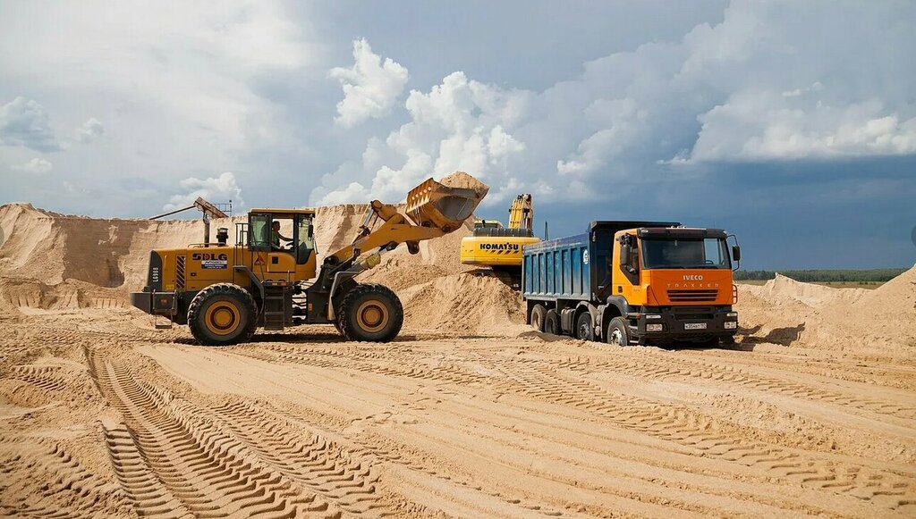 Доставка песка строительного в любую точку Великого Новгорода. Свой песчаный карьер в районе, своя техника