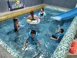 +Большой бассейн, банкетный зал (нас было 20 человек, отлично поместились), 2 туалета с душевыми и феном, 2 горки разной сложности, парилка, бильярд, аэрохокей, гардеробная и помещение где можно переодеться. - платное массажное кресло, прохладная вода в бассейне
