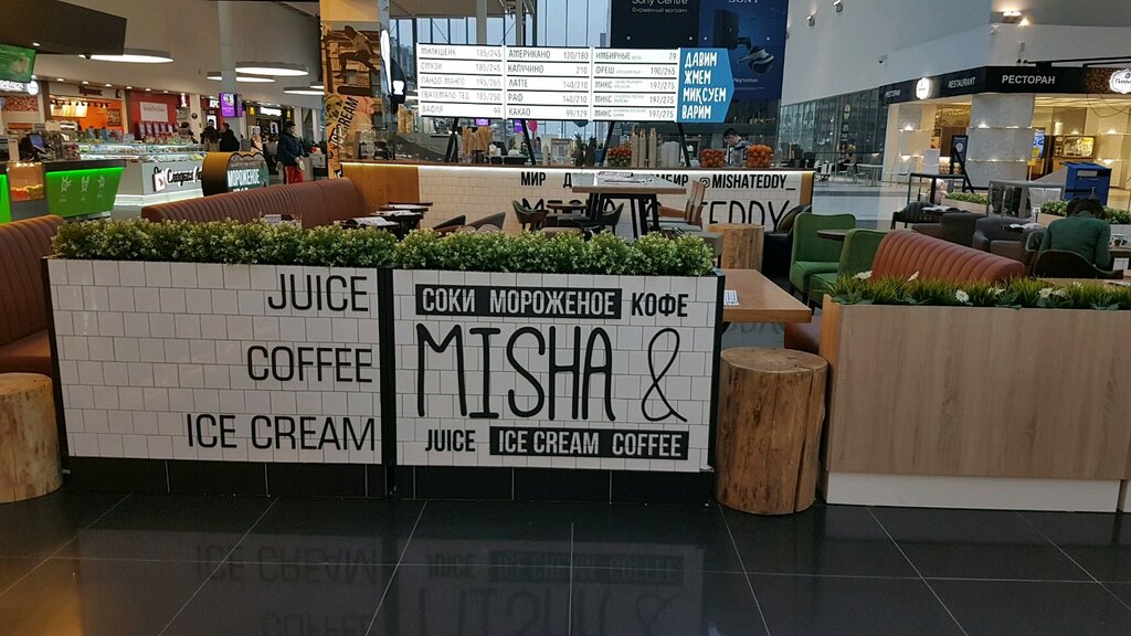 Вполне себе нормальное кафе, с приемлемыми ценами. Хотя, кажется, дорого, но в ресторанном дворике цены такие же. Не обольщайтесь. Еще кстати и местамвсегда есть. Мороженое Беларусь, очень вкусное.