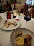 В день рождения жёнушки идём в ресторан, который она выбирает. В этом году её выбор пал на ресторан Michel, заказала заранее. Ресторан недалеко от м. Краснопресненская, удобно. Экстерьер заведения праздничный, новогодний, красиво. Встречают вежливо. Интерьер не столь примечателен, за исключением больших мягких игрушечных медведей, сидящих в креслах по одному за столом. На одну из стен проецируют чёрно-белые фильмы Голливуда из 30-х годов без звука. Несмотря, что мы были в рабочий день 16.12.2025, в ресторане было достаточно людно. Вино начинается с 3900 руб. за бутылку, горячие блюда от 1000 руб. Ресторан с претензией на французские блюда. Милая заказала улитки под соусом, 6 штук за 980 руб. Одну попробовал и я, небольшие и ничего особенного. Я заказал котлетки из кролика, тоже ничего особенного, две маленькие котлетки за 1200 руб., за исключением того, что в одной из них обнаружил внутри волос. Скандалить не стал, вызывать официанта тоже. Отмечу только дегустационный сет сыров за 980 руб., понравился и объем нормальный. В целом порции блюд маленькие, не наешься. Вместо кофе пришлось заказать белый чай, потому что кофемашина сломалась. Десерты стандартные и небольшие. Однако, на своём эклере увидел кусочек фольги. Фото прилагаю. Посидели скромно, за 10000 руб. на двоих, чтобы более-менее надо до 10000 руб. на одного. Обслуживание за столиком хорошее, хотя с задержкой, официанты внимательные и вежливые. В конце спросили, понравилось ли? Сказал про обнаруженные казусы. Извинения с их стороны были приняты. Даже не могу представить, кому рекомендовать этот ресторан, может только тем, кто оказался рядом и есть желание посидеть за столиком, попробовать что-то из французской кухни с ограниченным выбором по высокому ценнику.