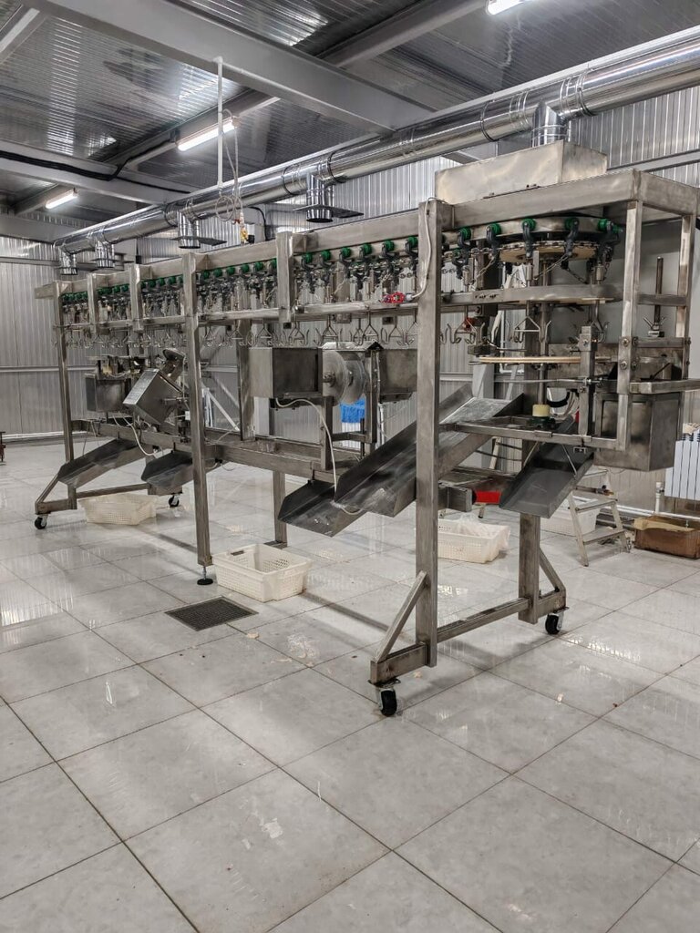 Машина модульной конструкции для разделки птицы. На ней можно обрабатывать потрошенных и начисто вымытых, как правило, предварительно охлажденных тушек птицы. В зависимости от требуемого производственного результата для различных функций использую...