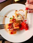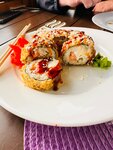 Заказывали ролл Филадельфия, темпура лосось, рис с морепродукта и смузи тропическое. Из наших впечатлений: рис как каша, роллы разваливаются, Филадельфия (тк написано не Лайт и тп) должна быть с рыбой по кругу, когда брали смузи трапическое не думали что банан и киви, ожидали манго, ананас и тп. Роллы нарезаны криво. Обстановка приятная, музыка хорошая, персонал вежливый.