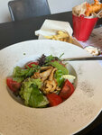 Хорошее сетевое заведение. Удачно расположено, вход с двух сторон, есть уличная веранда. Работают по принципу фастфуда, заказ у стойки. Забронировать столик нельзя (так ответили по телефону). Меню стандартное для сети. Сливочно-сырный соус был хуже, чем пробовала в других точках сети (но не критично). Окунь с рисом был прекрасно приготовлен.