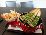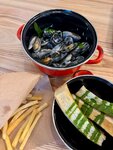 По рекомендации своих друзей,я решила посетить данное заведение.При входе,я была удивлена самообслуживанием,меню то что мне нравится, оно компактное,ничего лишнего.Присев на веранду, удивлена что она вообще работает при таких погодных условиях.Еду принесли очень-очень быстро это конечно безумно радует.Мидии были вкусные, только зачем столько дополнений в виде картофеля фри и целого багета,если в этих мидиях не было соуса,от слова со всем,там не вочто было макать.Есть ряд замечаний:Нет уличных обогревателей ,было холодно очень,плед это была тряпка которая тоньше любого шарфа,Столики на веранде маленькие,нас 4 человека, заказав еду нам принесли Кальмара в панировки в огромных тарелках равносильно столу,мы ели чуть ли не на руках его,не куда было ставить, хотя заказали по факту мидии и по основному блюду.Перчатки для мидий это позор,сделано как будто из мусорных пакетов,я хотела сделать фото красивое но в этих перчатках будто иду землю капать)Нет выходя на веранду вайфая.Нас было 3 девушек и все сумками, попросила подставку для этих сумок но их не оказалось,ставить на стол не было место.Вообщем все сделано для удобства персонала,но не для клиентов.Остались двоякие чувство посетив это заведение.