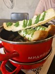 Добрый день! Вчера вырвались в Мидийное место г.Тулы, до этого посещали данное заведение в Сочи. Отстояли в очереди минут 10, после чего выяснили, что на веранде можно сесть без ожидания, т.к., в прохладную погоду, особо желающих располагаться на улице мало. Взяли 2 вида мидий в сливочно-сырном соусе (4 из 5), и в соусе по-каталонски (1 из 5,) на большого любителя, попробовали и отставили. Нас предупредили, что соус острый, но как раз по остроте он был средний, но вот по вкусу никакой). Мидии подаются с хрустящим багетом с соусом типа песто и картофелем фри, багет не вкусный и по ощущениям не свежий. Кальмар в панировке фаршированный сырным муссом вполне имеет место быть, но вот гарнир (пюре из кукурузы, было очень противное и сладкое, сначало даже подумали, что это батат.. Салат с хрустящим баклажаном вкусный, напитки не фильтрованное пиво и сухое вино, вполне приличные, но вино дороговато на мой взгляд, за бокал 1150 руб. Итог, второй раз наверное посетим это место, но попробуем другие блюда, а так по вкусовым качествам ожидали большего...