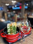 В субботу в теплый летний вечер заказы принимала только одна касса, из-за чего очередь начиналась вообще у входа в заведение. Официантам приходилось проходить мимо людей, которые часто могут и волосами взмахнуть, что точно блюдо испортит. Пока стояла в очереди, множество раз наблюдала, как бармен каждый второй стакан трогает голыми руками прямо за края. Да и само ожидание в очереди длилось минут 20-30 Сами мидии неплохие, но в других городах в ресторанах этой сети сливочно-сырный соус намного вкуснее.
