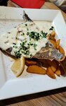 Из плюсов только то, что быстро обслужили. Видимо потому,что надо было только в микроволновке разогреть . Шницель из тунца был похож на подошву- одни сухари, а картофельное пюре к нему либо БПшка, либо давнишнее. И это взяли по рекомендации девушки на кассе, как очень вкусное. Вообще для ресторана меню очень скудное. Не советую это место.