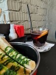 Еда неплохая. Но очень маленькие столики. Еду приносят сразу и ставить её, если вдвоём, абсолютно некуда. Предложили поставить на подоконник, но это такой себе вариант.. Пока ешь салат, суп остыл. В общем, в этом плане, как в столовке.