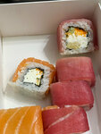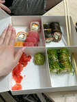 Disrespecting. We ordered delivery, there are cool big ones in the photo, we thought the price was normal, but these funny little rolls arrived. There's not a lot of rice, which is a plus, but the cat didn't cry about the fish. Dyed ginger… In general, I do not recommend delivery for sure, the price / quality is weak. For this money, you can order rolls much more worthy.