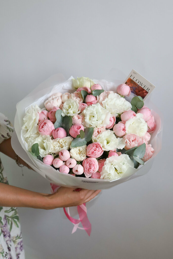 Пионовидные кустовые розы и Эустома
