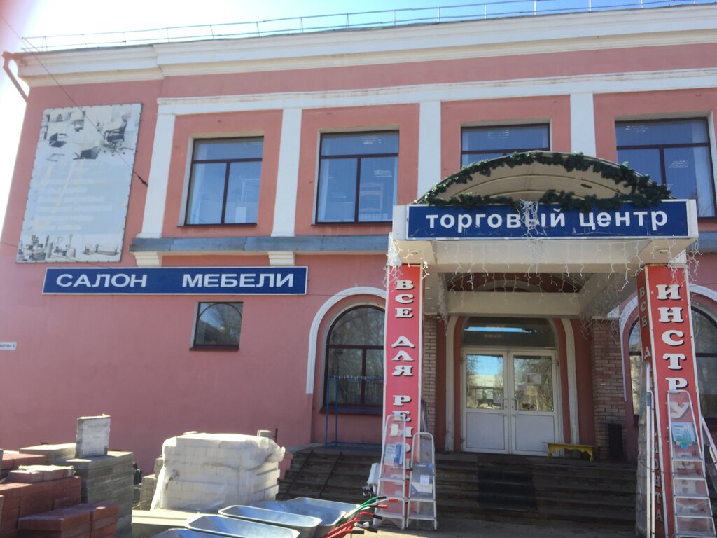 Историческое здание. Задумывалось и ранее использовалось как ресторан в так называемом "поселке строителей" ( строили НПЗ). Ресторан располагался здесь в далёкие 50-70е годы прошлого века. Раньше здесь после тяжёлого трудового дня, видимо, отдыхали рабочие и другие категории населения. Сейчас здание используется как магазин. К сожалению, здание снаружи не отремонтировано. Даже реклама вся выцвела и обветшала, не очень приятно на это смотреть. Но, вместе с тем, удобно, что можно подкупить что-то из сантехники, для ремонта, дачи. Хозяйственный блок нормальный. На 2 этаже -мебель. Ассортимент неплохой, уровень-эконом. Есть и прихожие, и кухни, и диваны и т.д. Продавцы, по крайней мере те, с которыми общалась я, не очень любезны. Если видят, что ничего не покупаешь, начинают отворачиваться. Вызывает много вопросов забор вокруг магазина. Он настолько близко расположен к ближайшему дому, что просите с двумя пакетами мусора (!!!) к мусорным контейнерам практически невозможно. Уверена, что хозяин магазина в данном случае нарушил все допустимые нормы